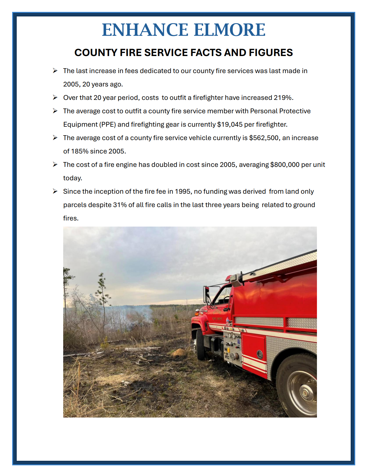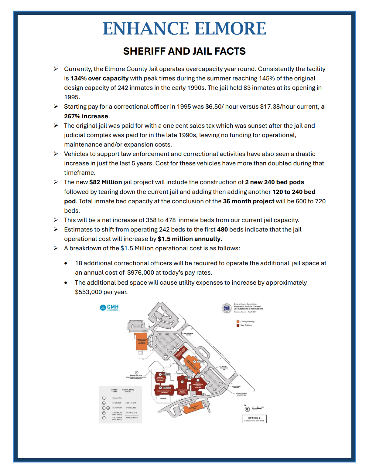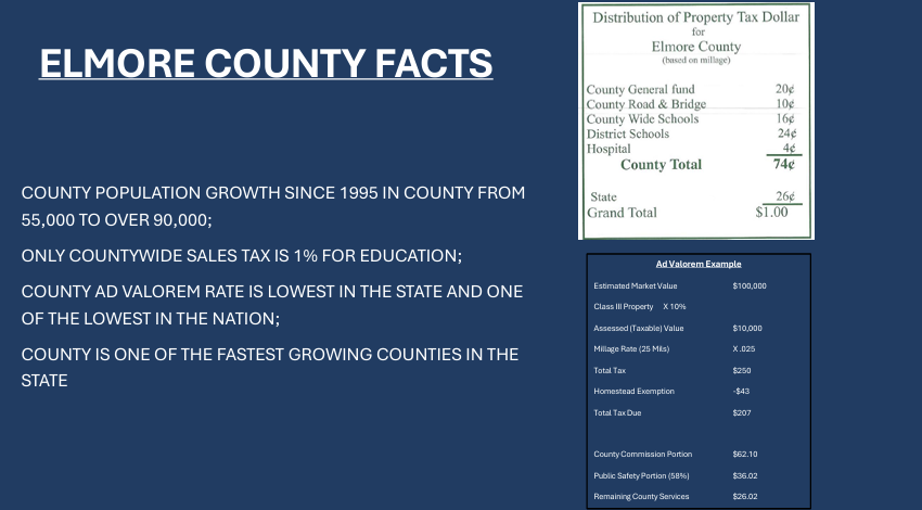 4. Developing a plan to proactively address shortfalls created by the county’s growth has been a long, thorough and collaborative process which evaluated a number of funding mechanisms and was a collaborative effort led by the County Commission and involving the Sheriff, Elmore County Firefighter Association, our municipalities, our Boards of Educations, our local legislative delegation, and the public.