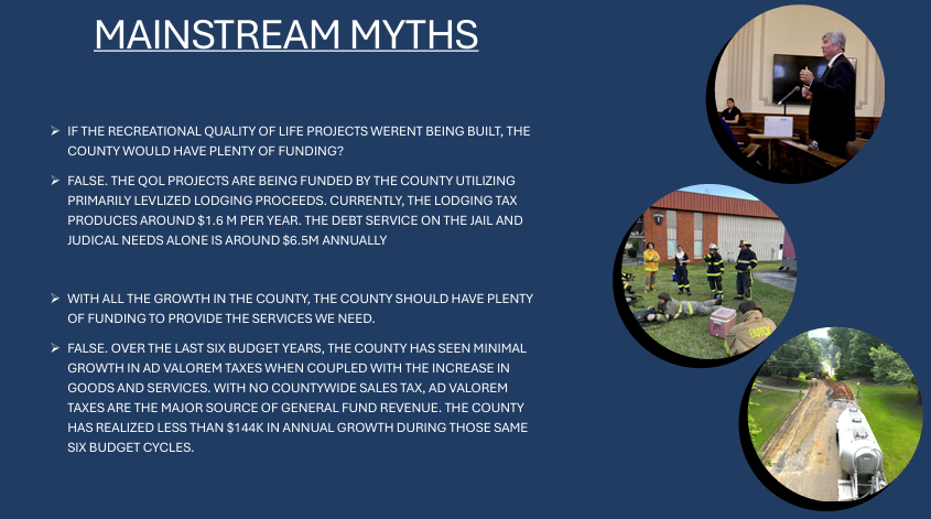 2. While some have suggested that the quality of life project investments should have been made on the public safety and county fire services first, the viability of the revenue being produced by the levelized lodging fee is directly correlated to the ability of the county, our municipal partners and education partners to possess venues that will attract visitors for